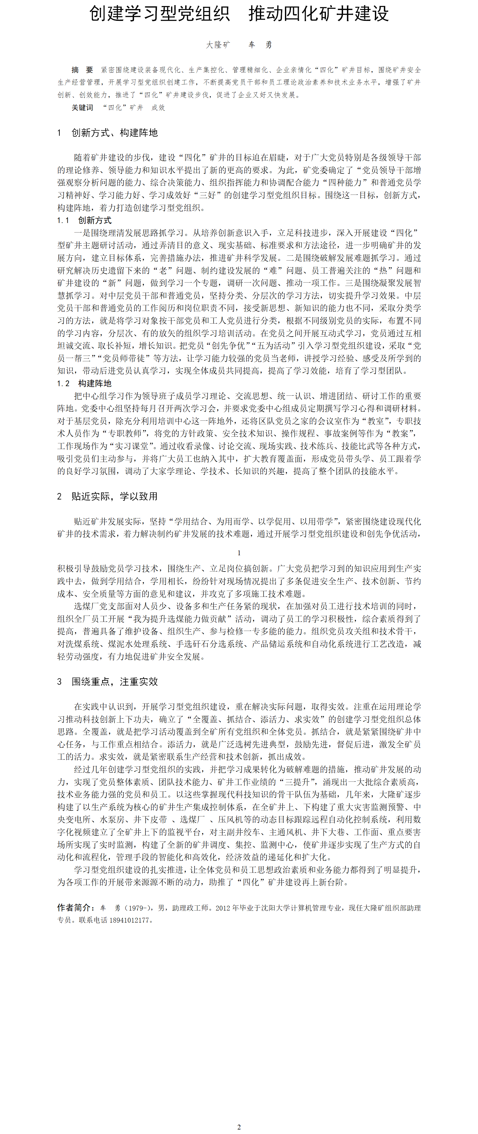第54屆等級(jí)獎(jiǎng)?wù)撐?--創(chuàng)建學(xué)習(xí)型黨組織 推動(dòng)四化礦井建設(shè)