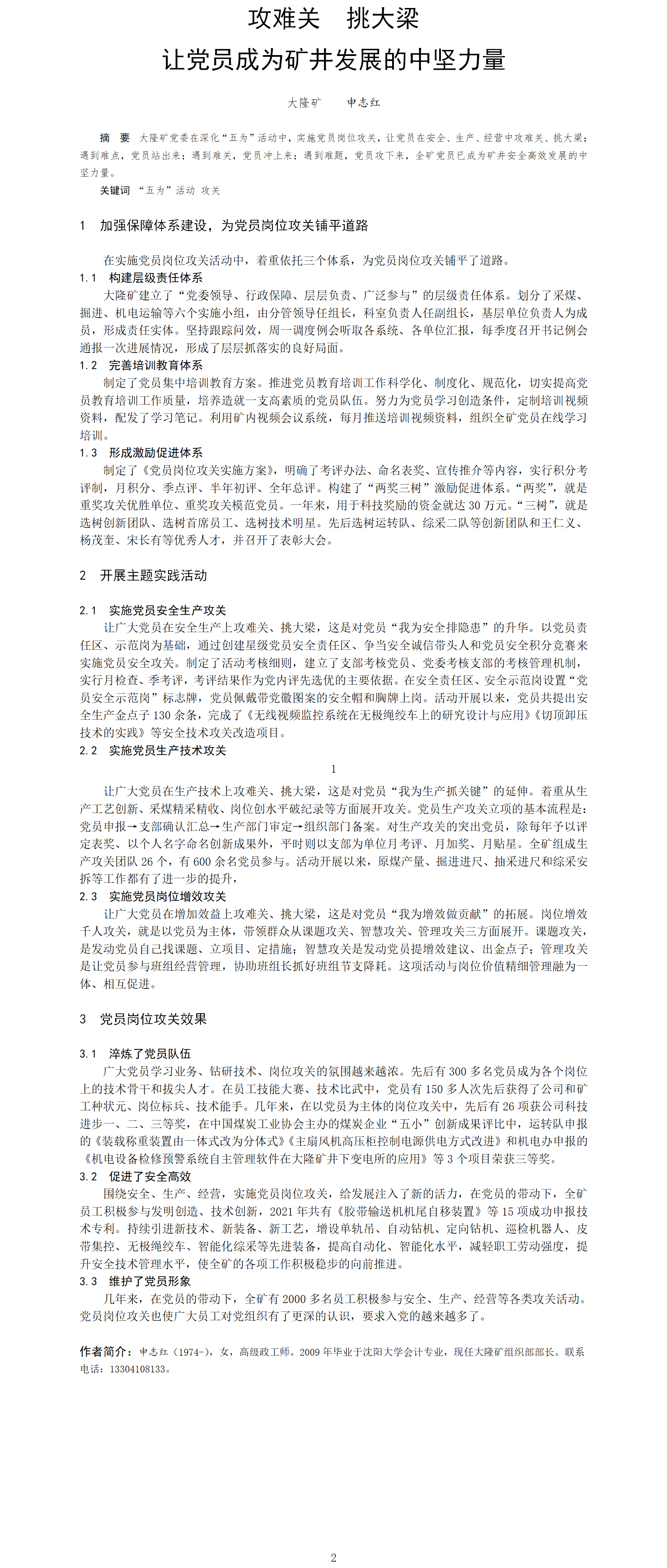 第54屆等級(jí)獎(jiǎng)?wù)撐?--攻難關(guān) 挑大梁 讓黨員成為礦井發(fā)展的中堅(jiān)力量