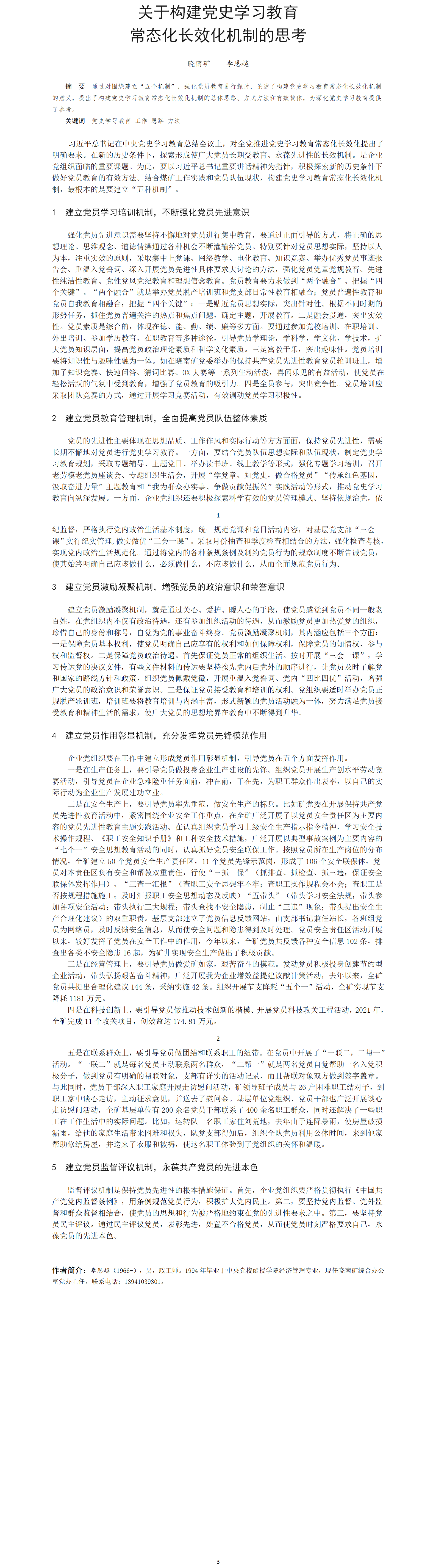 第54屆等級獎?wù)撐?--關(guān)于構(gòu)建黨史學(xué)習(xí)教育 常態(tài)化長效化機制的思考