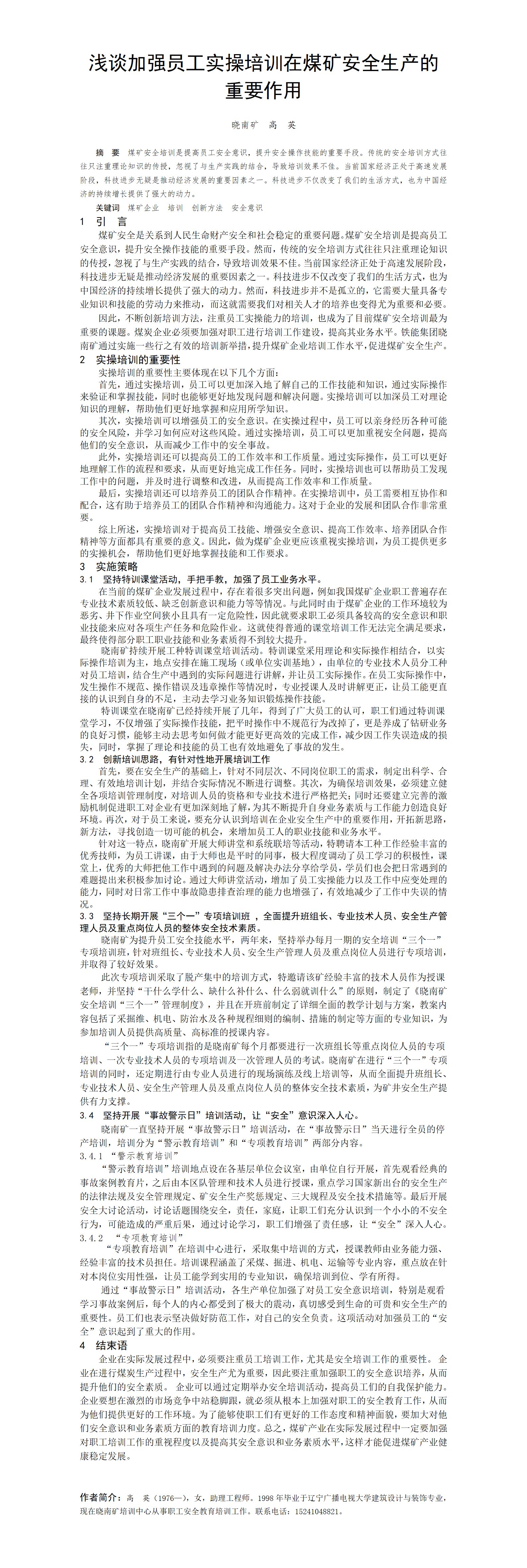 第61屆等級(jí)獎(jiǎng)?wù)撐?--淺談加強(qiáng)員工實(shí)操培訓(xùn)在煤礦安全生產(chǎn)的重要作用
