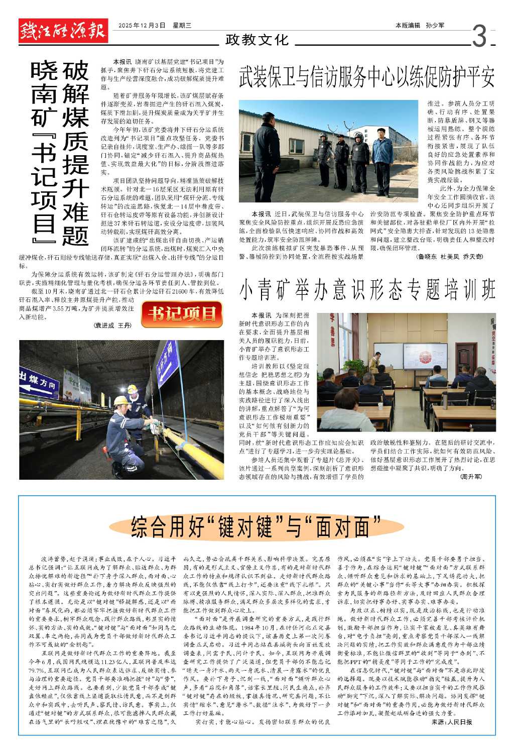 曉南礦“書記項目” 破解煤質提升難題